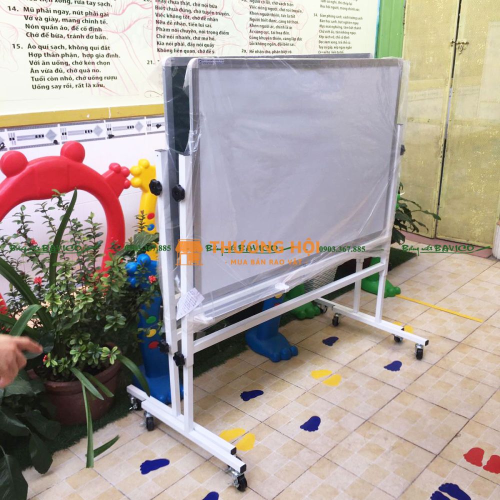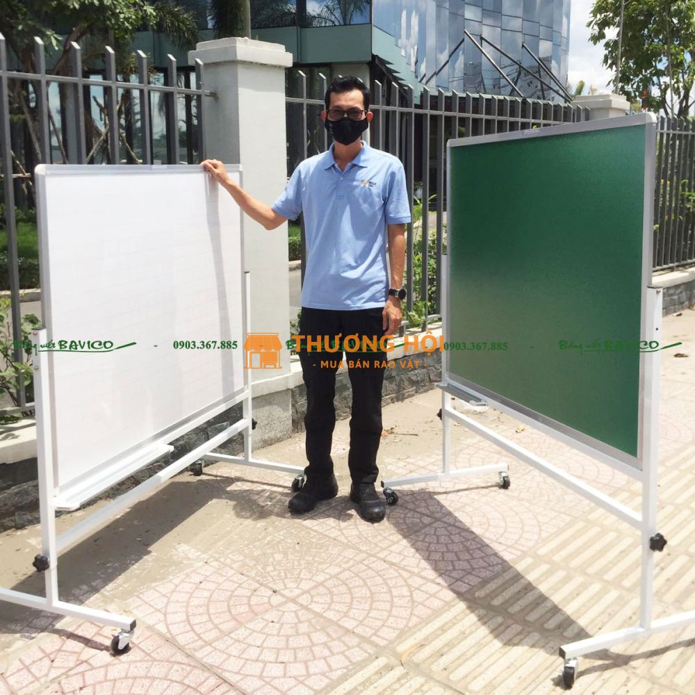 Đây là loại bảng viết bút lông hoặc viết phấn (tùy mặt bảng), sử dụng mặt thép từ Hàn Quốc chất lượng cao. Bảng có khả năng hít nam châm, giúp gắn tài liệu dễ dàng. Mặt bảng được lắp trên khung nhôm và chân chữ T có bánh xe, tạo nên sự cơ động và tiện dụng trong quá trình sử dụng.