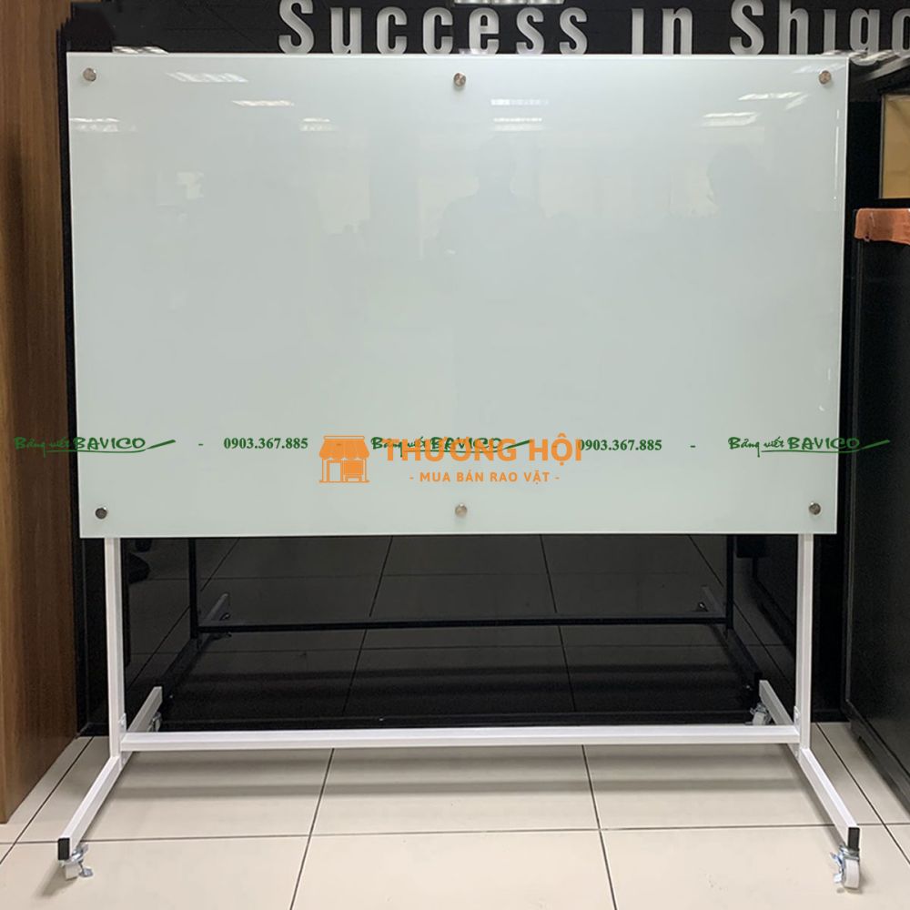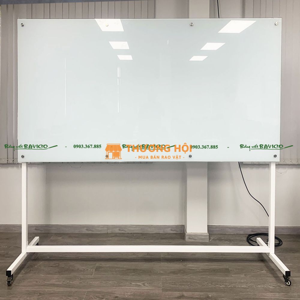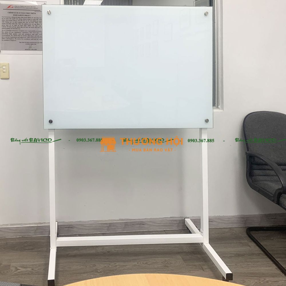 Đây là loại bảng được làm từ kính cường lực cao cấp, có độ dày và độ bền vượt trội, được gắn trên khung chữ T vững chắc có bánh xe di chuyển linh hoạt. Bảng dùng để viết bằng bút lông chuyên dụng cho kính, dễ dàng xóa sạch không để lại vết mờ, giúp tiết kiệm thời gian vệ sinh.