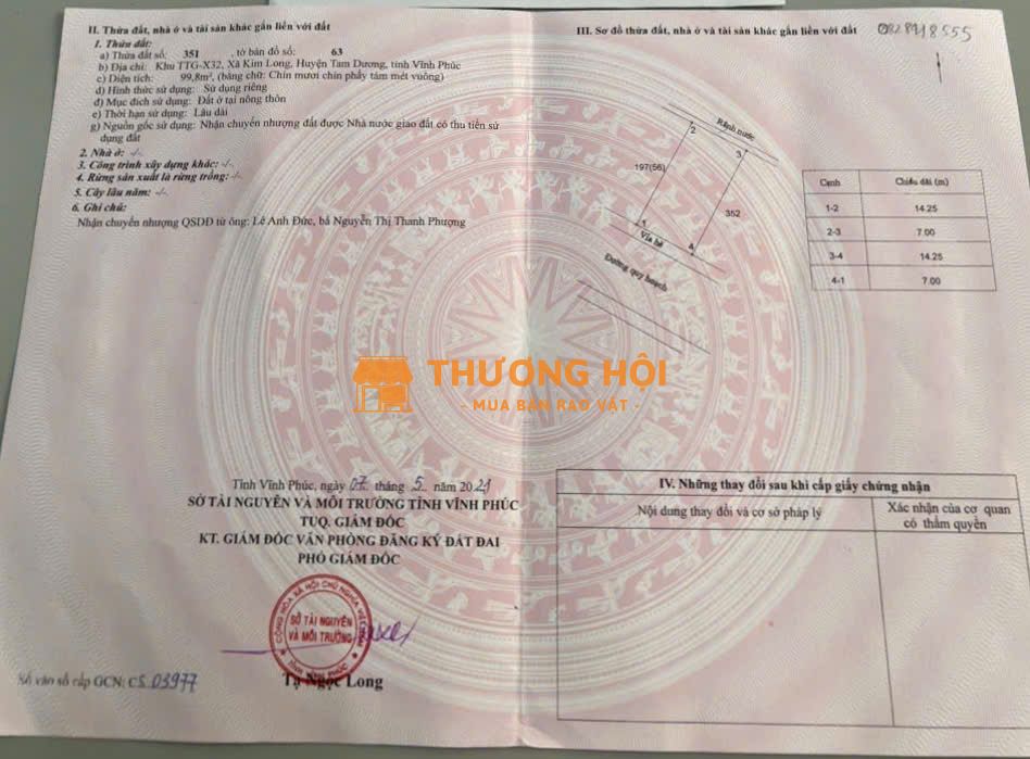 Chính chủ cần bán mảnh đất 100m2, sổ đỏ chính chủ, mặt tiền 7m, sâu 15m. Đường trước mặt 13m đã trải thảm nhựa