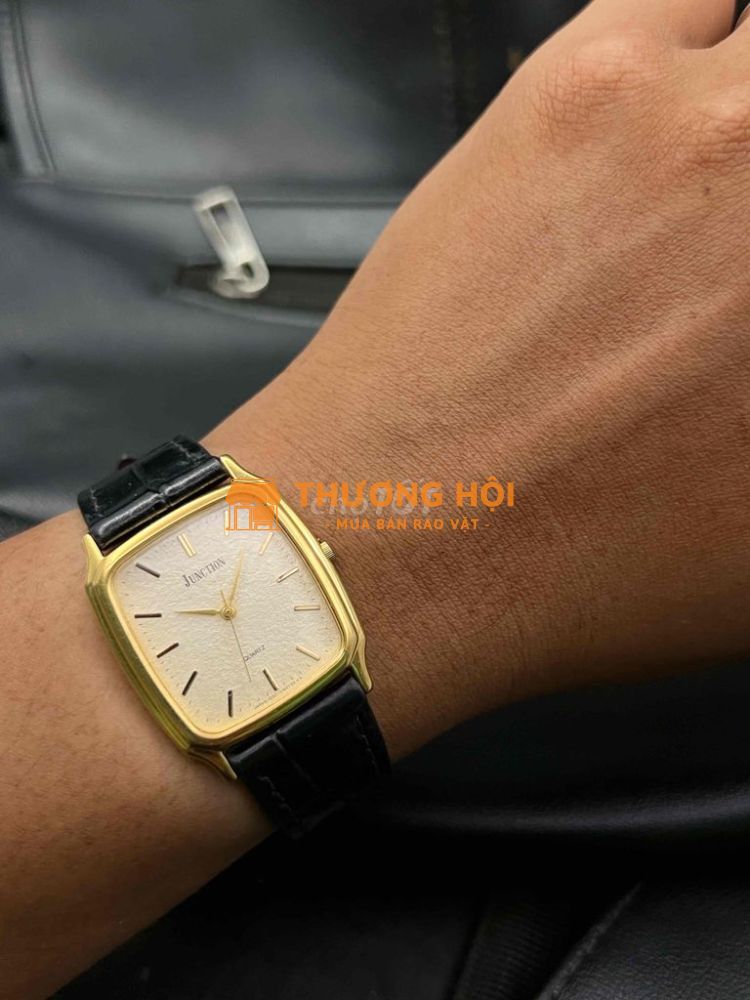 Citizen Junction tank vàng mặt vân tuyết cổ điển sang trọng. Size 28,5x29 chưa núm càng. ❗❗❗❗❗❗❗ •Kính đẹp trong. •Dial vân tuyết đậm nét cổ điển. Kim cọc vàng óng ánh gọn gàng có lên dầu nhẹ. •Vỏ mạ vàng sáng đẹp ko mòn tróc,đáy thép zin sớ dập hiệu. •Dây khóa thay mới hợp đồng hồ. ❗❗❗❗❗❗❗