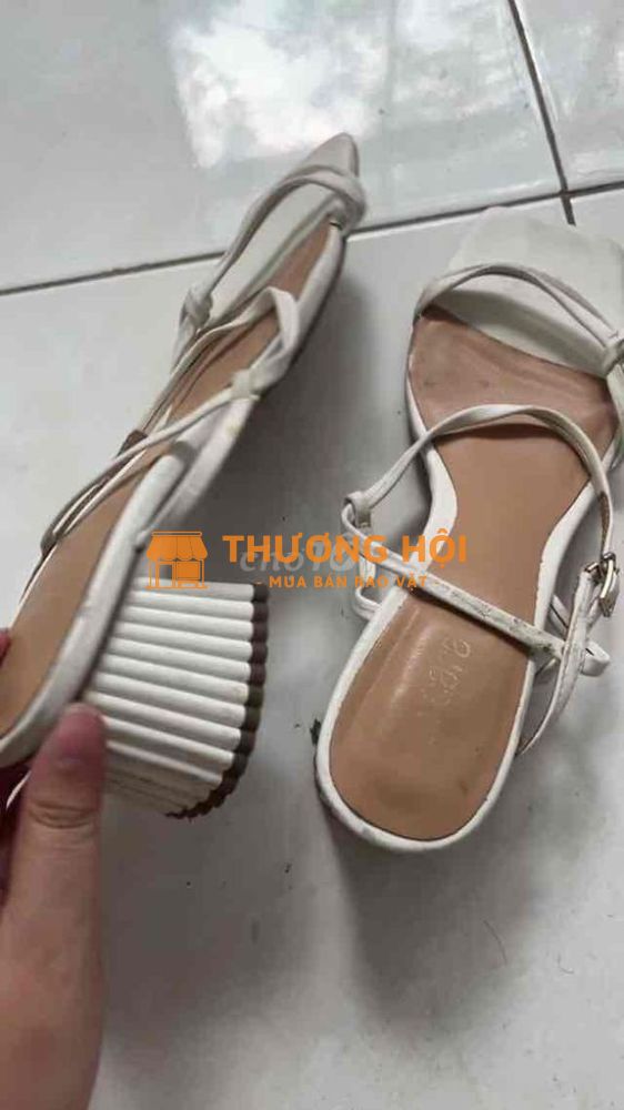 Giày cao gót Vascara size 37, màu trắng. * Chất liệu da. * Kiểu dáng thanh lịch. * Mình ít dùng nên muốn nhượng lại. * Giày cũ