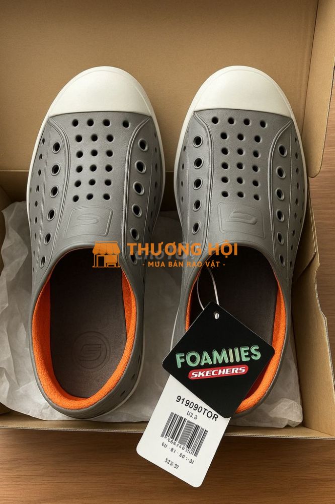 👟 Giày Skechers Foamies – hàng order US Mới 100%, chưa sử dụng. Màu xám phối cam nổi bật, kiểu dáng năng động – nhẹ, thoáng, dễ vệ sinh, mưa nắng chẳng quản. Nam hay nữ miễn là vừa chân thì đều xinh yêu. Form chuẩn Mỹ, size 37 (23.5cm) Giá web chính hãng khoảng 72USD chưa thuế ship, mình để lại 1.100.000đ – deal cực mềm cho ai thật sự cần 💸