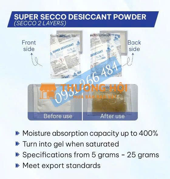 Silica Gel: Hấp thụ ẩm nhanh, ổn định, thích hợp cho gỗ tự nhiên và nội thất cao cấp.