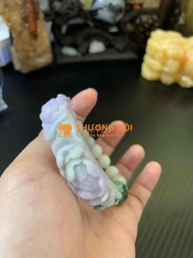 Bán khánh tay (không kèm hạt) Khánh tay khắc hoa màu tím - xanh - hoa bay xanh đậm Đã được kiểm định liulab type A ( mất sổ nên ai cần sẽ kiểm lại - chi phí người mua trả, không đạt mình trả lại phần chi phí này ạ) Có thể mua dây vải thắt hoặc về kết hợp chuỗi theo sở thích.