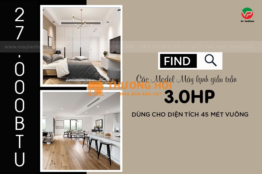 Máy lạnh giấu trần công suất 3 ngựa: