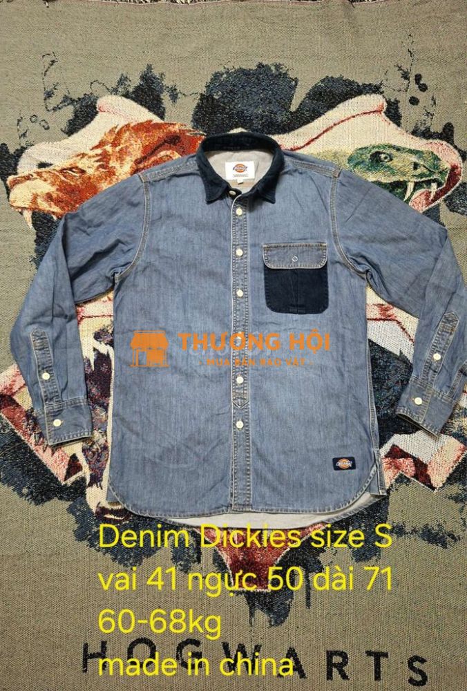 Sơmi tay dài chất denim xanh sáng Hiệu Đíc ky phối túi và cổ jeans dày Vai 41 ngực 50 dài 71cm Cho anh em cân nặng 60-68kg đẹp Độ mới cao không lỗi nguyên zin Made in china Giá 300 quan tiền Thanks for watching