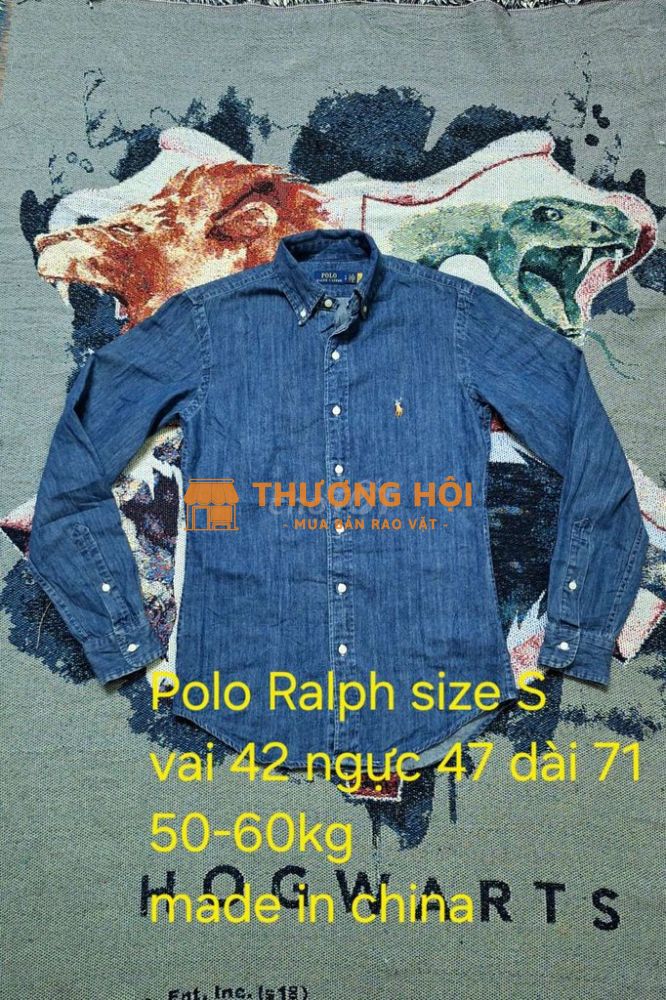 Sơmi tay jeans denim form slim fit Hiệu Polo Ralph Lauren size S á Vai 42 ngực 47 dài 71cm Cho anh em cân nặng 50-60kg Like new ko lỗi lầm Made in china Giá 600 quan tiền Thanks for watching