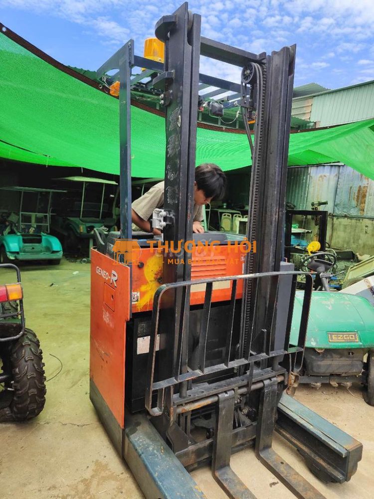 xe nâng điện đứng lái Toyota 10 nhập nhật giấy tờ đăng kiểm hóa đơn đầy đủ chưa sử dụng tại việt nam nguyên bản cực kỳ ngon có đăng kiểm ae yên tâm nâng 1000kg cao 3m7 có ra vào cần có gật gù có phanh có trợ lực giá chỉ 59 triệu