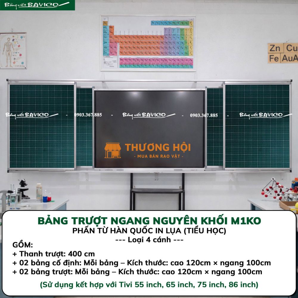 Là giải pháp bảng viết hiện đại được nhiều trường học lựa chọn nhằm tối ưu không gian giảng dạy và kết hợp linh hoạt với thiết bị trình chiếu. Trong đó, BẢNG TRƯỢT NGANG THÔNG MINH 4 CÁNH – KT: 120X400 CM (M1KO) của BAVICO là mẫu bảng chuyên dùng cho bậc Tiểu học, thiết kế nguyên khối chắc chắn, thẩm mỹ cao và vận hành êm ái.
