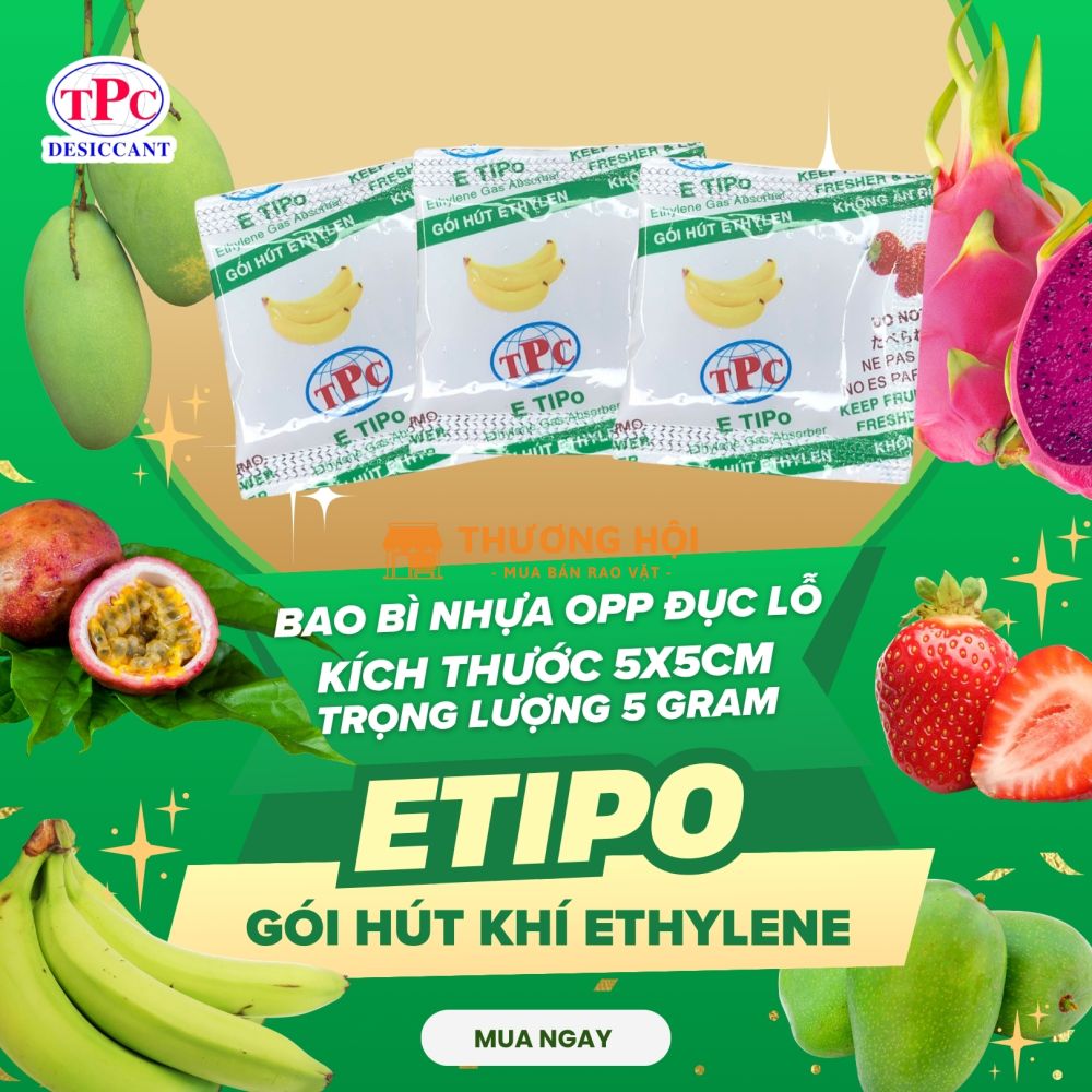 Gói hút khí ethylene ETIPO giúp kiểm soát khí trong thùng hàng, hỗ trợ kéo dài độ tươi.