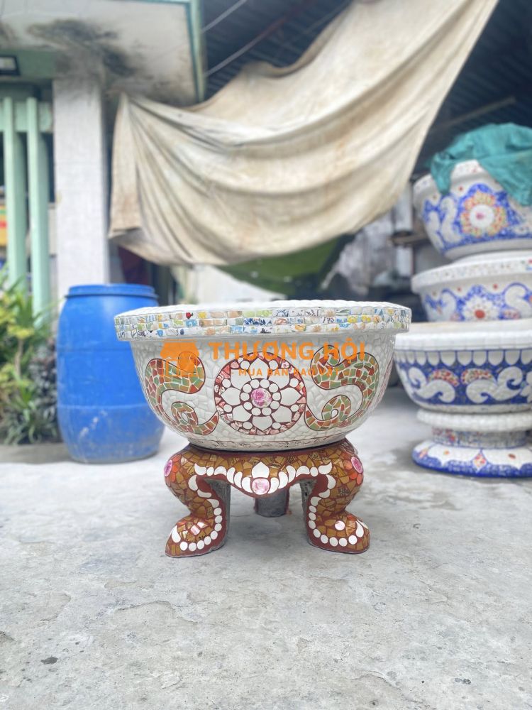 Chậu đắp tay cẩn miểng chén dĩa, thủ công mỹ nghệ Thủ Đức - Tphcm
