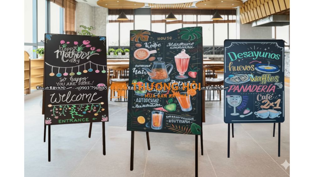 - Sử dụng linh hoạt: Bảng menu 2 mặt khung gỗ có chân, dể di chuyển đổi góc Decor theo ý tưởng của bạn.