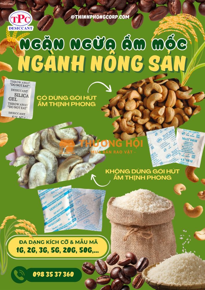Nông sản như gạo, cà phê, hạt điều, tiêu, đậu… là những mặt hàng rất nhạy cảm với độ ẩm trong quá trình lưu kho và vận chuyển. Khi độ ẩm không được kiểm soát, nông sản dễ bị mốc, giảm chất lượng, thậm chí mất giá trị thương mại. Vì vậy, việc sử dụng gói hút ẩm Thịnh Phong là giải pháp cần thiết giúp bảo quản nông sản an toàn và hiệu quả.