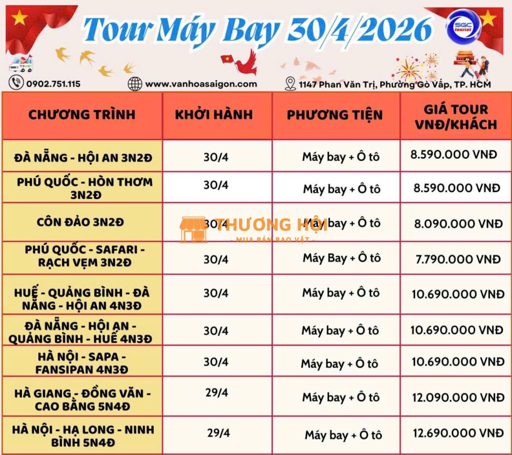 🛫 Tour khởi hành dịp lễ 30/4 – 1/5
